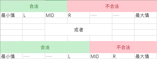 - 可行解对于区间满足一定的单调性。换言之,如果
