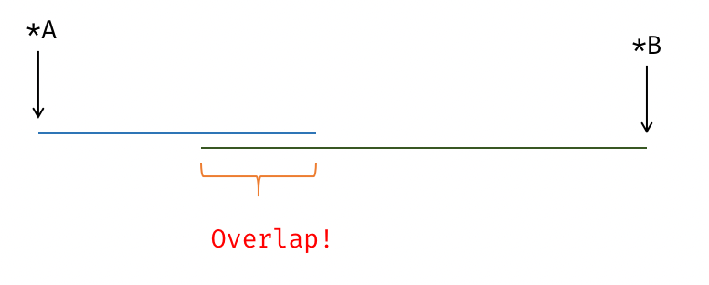 两个任意指针对应的区域可能出现重叠 (overlap),此时需要特判是否可以使用向量代码。下图展示了一个指针重叠的例子: