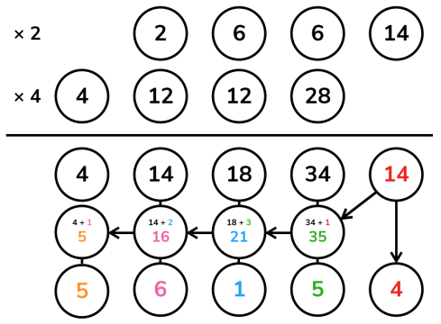 也就是从最低位开始,将两个加数对应位置上的数码相加,并判断是否达到或超过 。如果达到,那么处理进位:将更高一位的结果上增加 ,当前位的结果减少 。